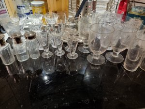 Glas mm också överallt. Kan lyckligtvis ställas tillbaka i sitt skåp eftersom det ska stå kvar på sin nya plats. Men det visade sig att många glas var extremt dammiga och måste diskas…