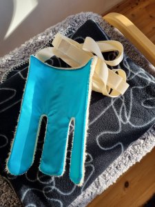 Jag har skaffat diverse hjälpmedel. Kryckor, griptång, sittdyna mm. På bilden ser ni min fantastiska strumppåtagare. Den funkar otroligt bra. En sån borde jag ha skaffat för flera år sen
