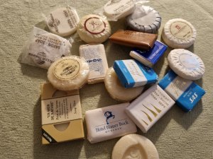 Jag har lite tappat fart i mitt rensningsprojekt. Ett lite lustigt miniprojekt var att samla ihop och inventera ett respektabelt antal minitvålar som jag har plockat på mig under decennier av tjänsteresor. Dessa ska i och för sig inte slängas utan användas upp som handtvål i badrummet. Efter någon månad inser jag att det kommer att ta åratal innan de tar slut. Så kan det gå.