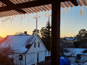 Det har varit jobbiga månader i min lägenhet. Fasadrenovering och fönsterbyte har varit en påfrestning. Oväsen, insyn, hantverkare och röra i lägenheten. Hela huset inklätt i ogenomskinlig plast i månader utan möjlighet att se ut överhuvudtaget. Nu i princip klart. Underbart att få in solen och kunna se omgivningen. Också kunna använda balkongen igen (om nu våren behagar anlända nån gång.. ).
